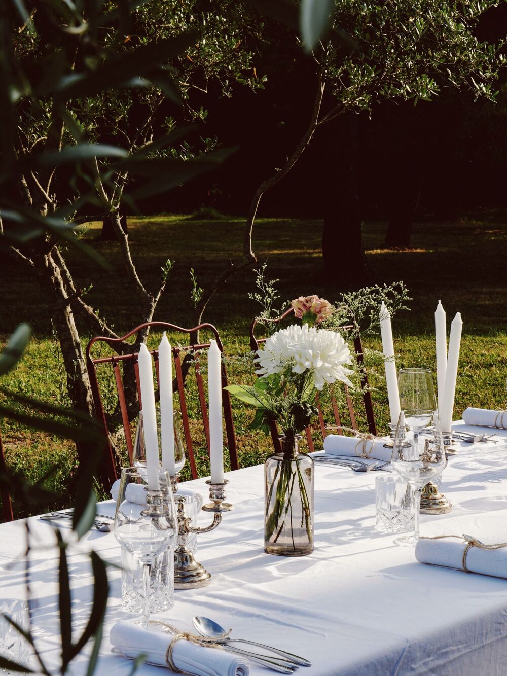 Pour recevoir vos invités dans les meilleures conditions, nous mettons à votre disposition du mobilier pouvant accueillir jusqu’à 30 convives, comprenant tables, chaises et vaisselle. Selon vos envies, la mise en place peut se faire sur les différentes terrasses du mas, offrant ainsi un cadre adapté et chaleureux.
