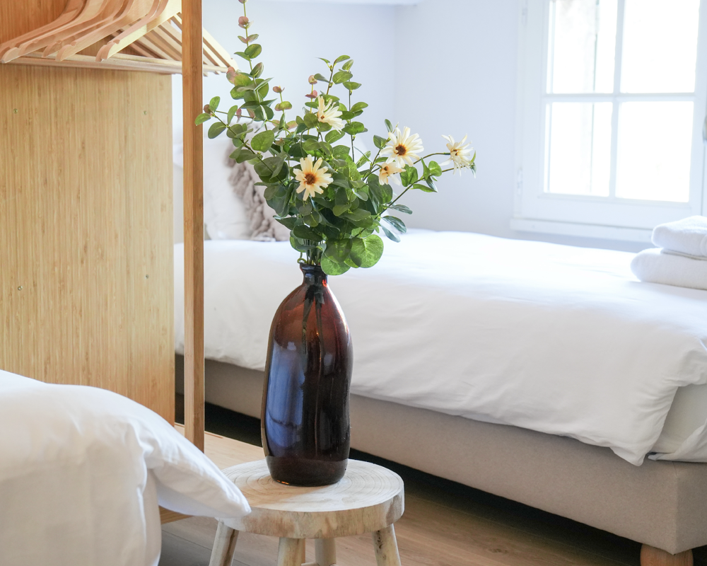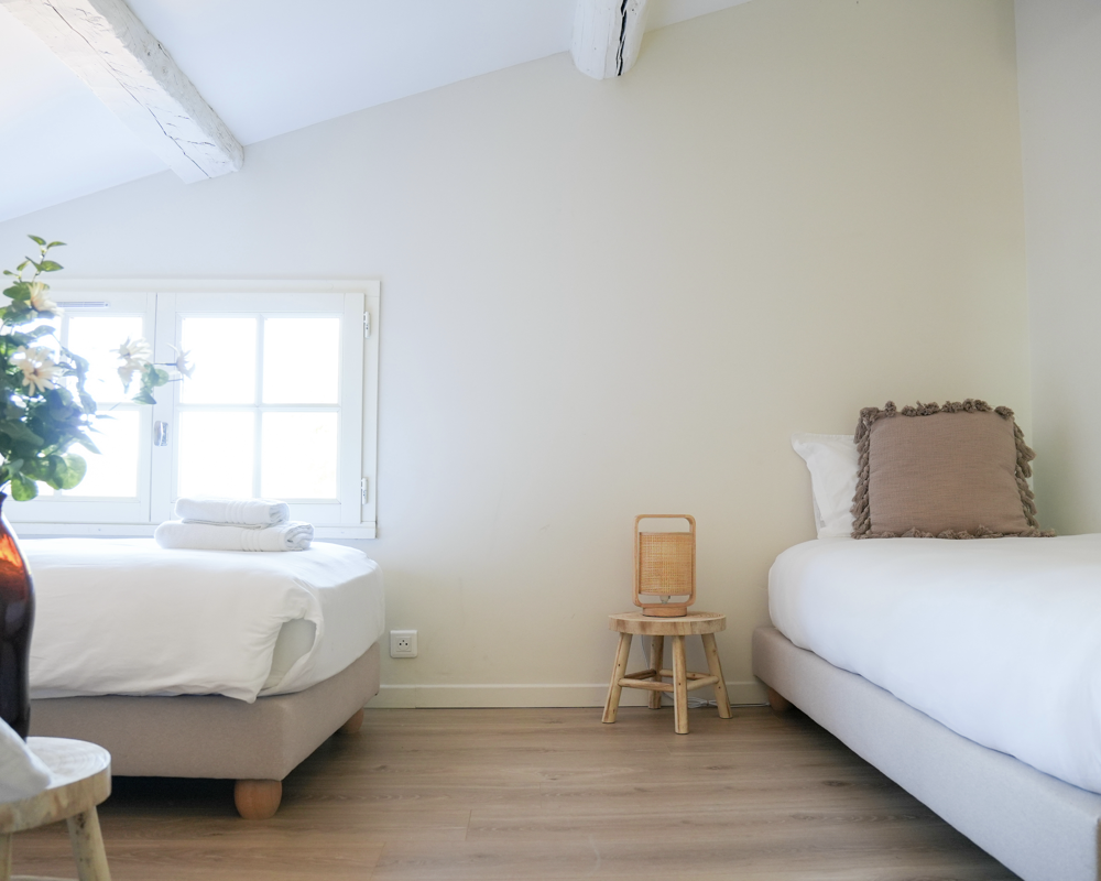 La maison offre cinq espaces de couchage confortables et climatisés, pensés pour accueillir jusqu’à 13 personnes dans un équilibre harmonieux entre intimité et partage.